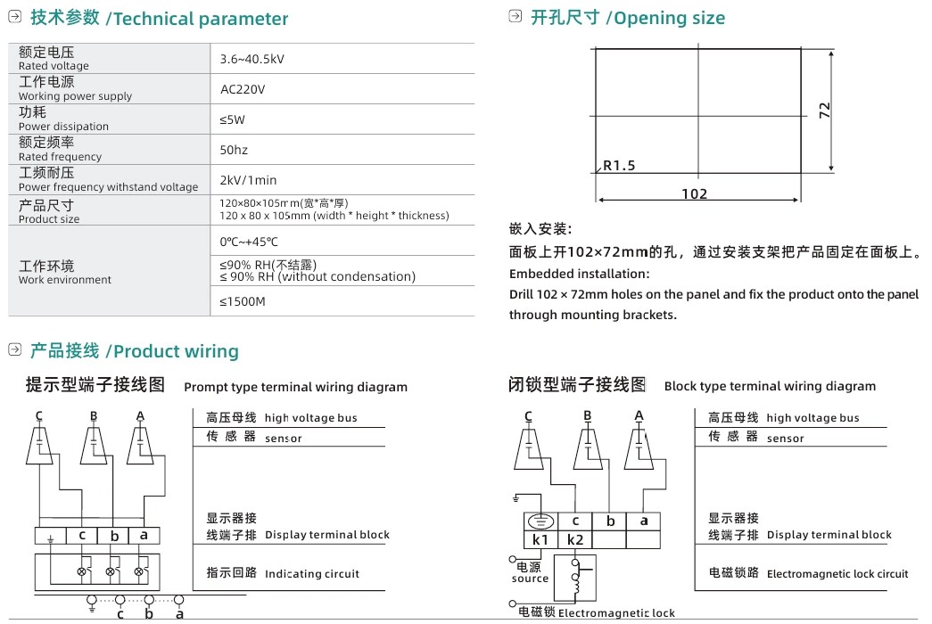 이 라이브 디스플레이 장치는 명확한 전원 공급 상태가 필수적인 실내 전기 시스템 내 주요 지점에 설치하도록 설계되었습니다. 다음을 포함한 광범위한 고전압 배전 장비와 호환됩니다.