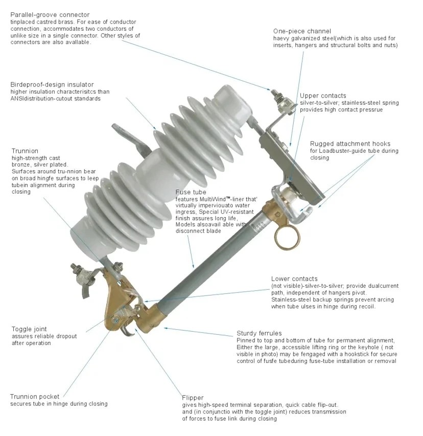 홀더가 있는 고전압 드롭아웃 세라믹 퓨즈 컷아웃은 과전류 보호를 위해 열 차단을 사용합니다. 그들은 모든 운영 시나리오에서 이 기본 원칙을 사용합니다.