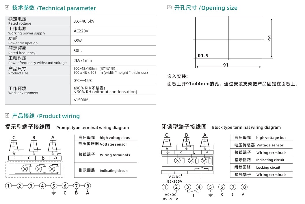 탁월한 호환성: 대부분의 실내 고전압 시스템용으로 특별히 설계되었으며 다양한 브랜드의 고전압 장비와 호환됩니다. 그 다양성으로 인해 다양한 장치에 대한 전용 표시기를 구입할 필요가 없습니다.