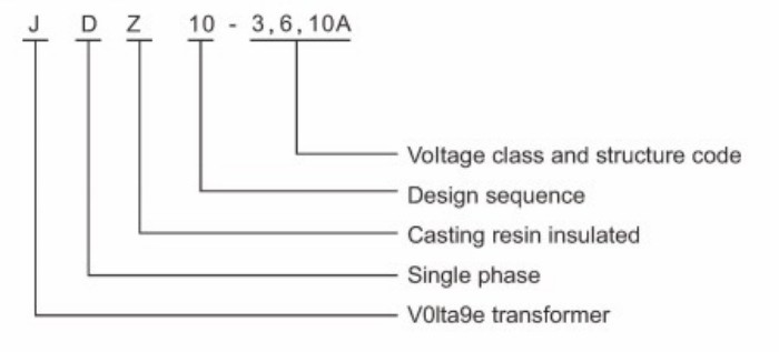 J = 전압 변압기, D = 단상, Z = 에폭시 수지 주조 절연체, 3/6/10 = 전압 레벨.